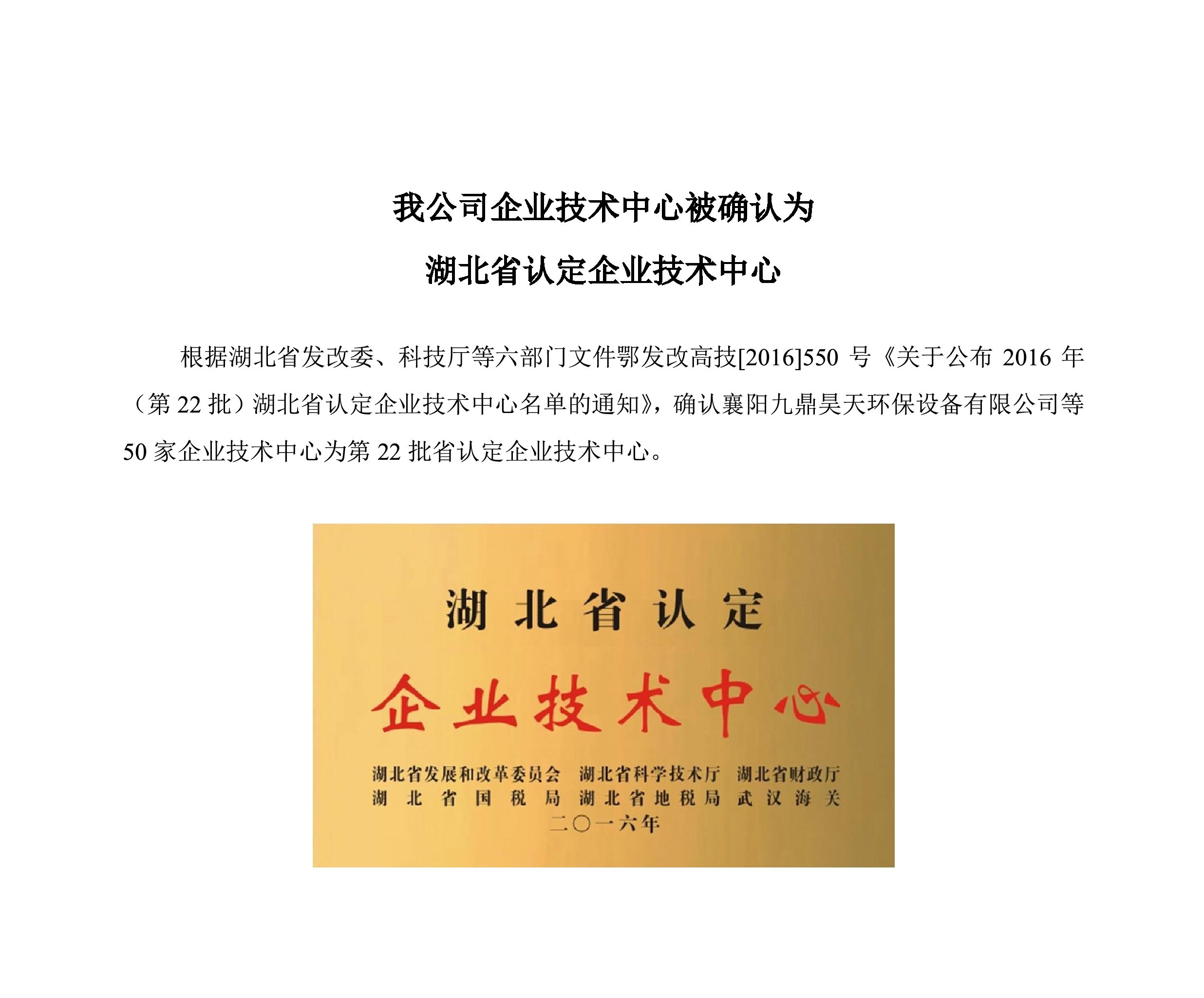 襄阳九鼎企业技术中心被确认为湖北省认定企业技术中心