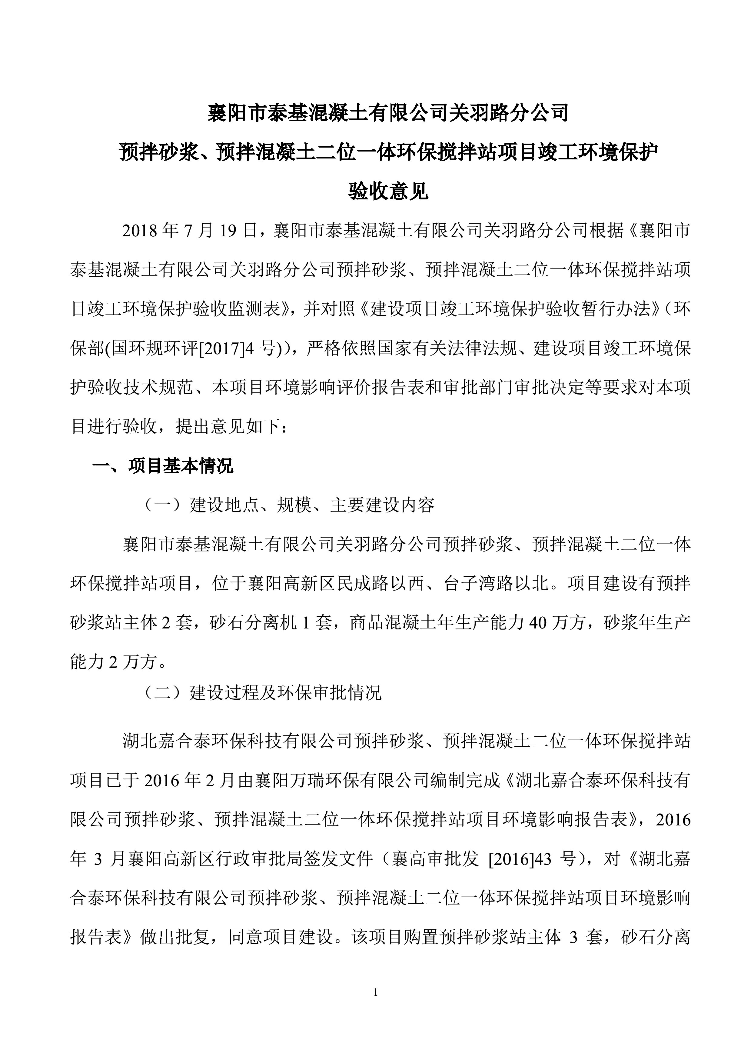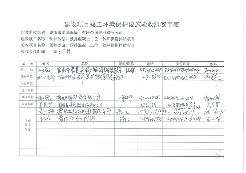 泰基公司二位一体混凝土搅拌站顺利通过竣工环保验收